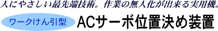 4mタイプで機長4,400mm、全長6.500mm、位置決め精度±0.2.累積誤差±0.03/m。さら{こ、ワークけん引型ACサーボ位置決め装置は、切断機・プレス・ボール盤等に設置すれば、全てNC化が可能になります。